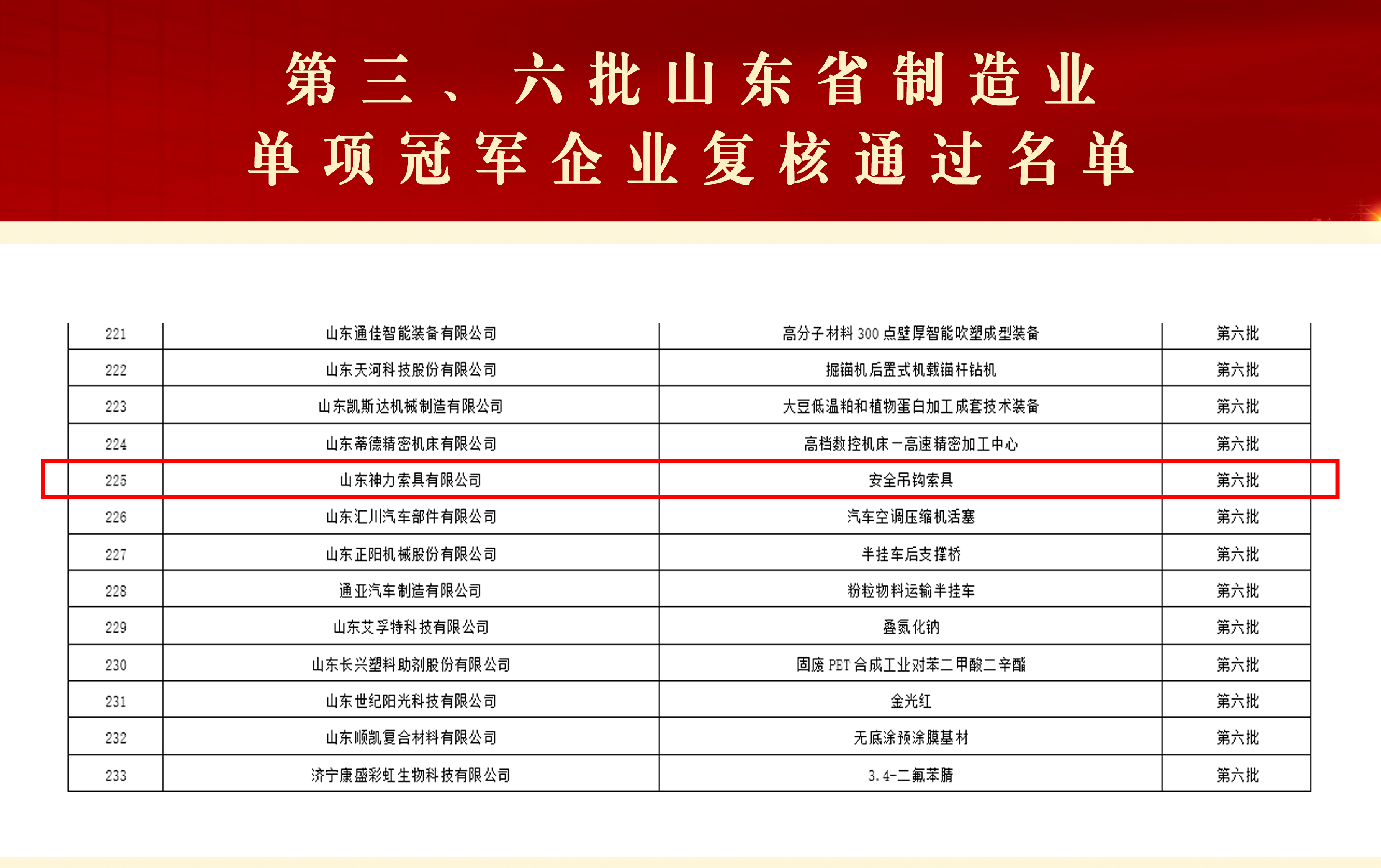 近日,山东省工业和信息化厅正式公布第九批山东省制造业单项冠军企业及通过...