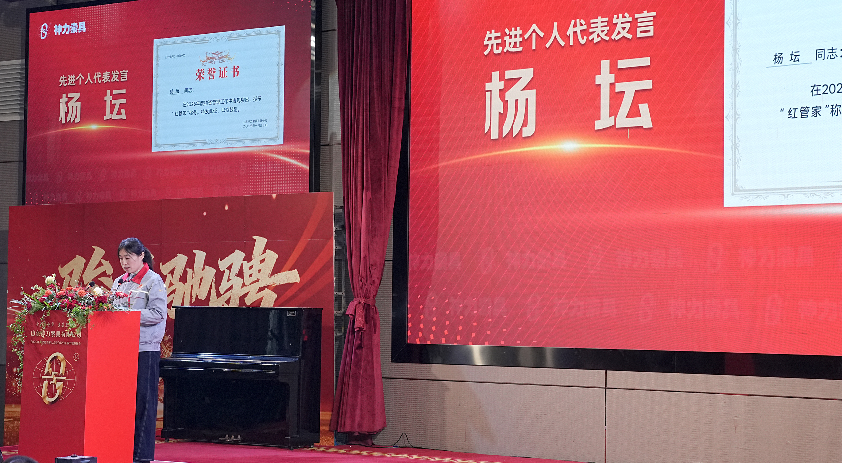 金蛇辞旧岁,骏马启新程。2026年2月7日,山东神力索具有限公司二零二五年度总结表彰大会在嘉祥银座佳悦大酒店隆重举行。会议总结二零二五年度工作,表彰先进代表,也展望二零二六,绘制发展蓝图,为“十五五”新征程吹响了进发的冲锋号。