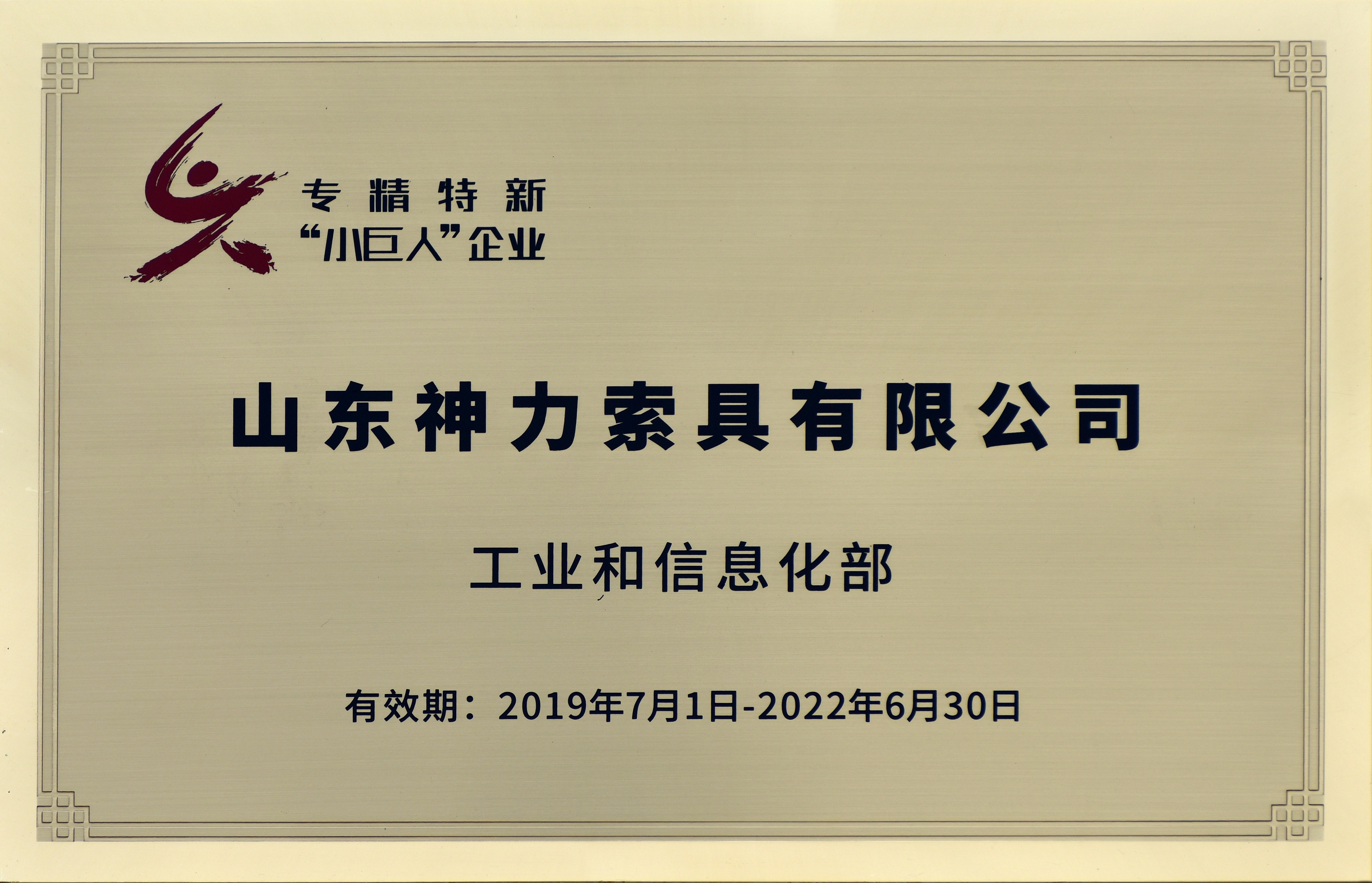 近日,国家工业和信息化部正式公布第七批及2025年通过复核的专精特新“小巨人”企业名单。山东神力索具有限公司凭借在高端索具领域的扎实积累与持续创新,成功通过复核,国家级专精特新“小巨人”企业资质延续至2028年6月30日。这一殊荣不仅是对神力索具技术实力和市场地位的权威认可,更是对企业坚持“专业化、精细化、特色化、新颖化”发展路径的高度肯定。